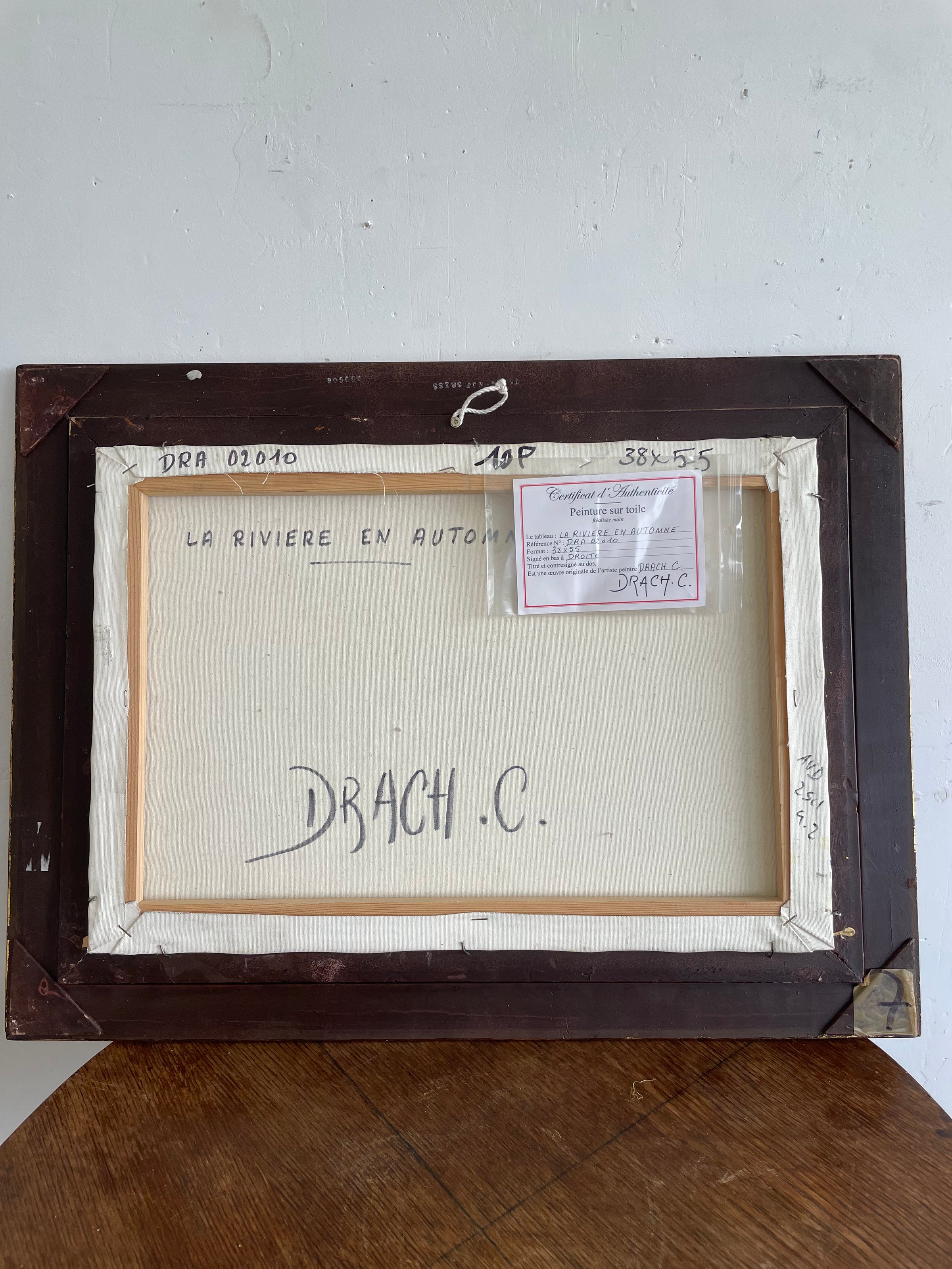 Peinture “La rivière en Automne” de Drach C. avec son certificat d’authenticité.