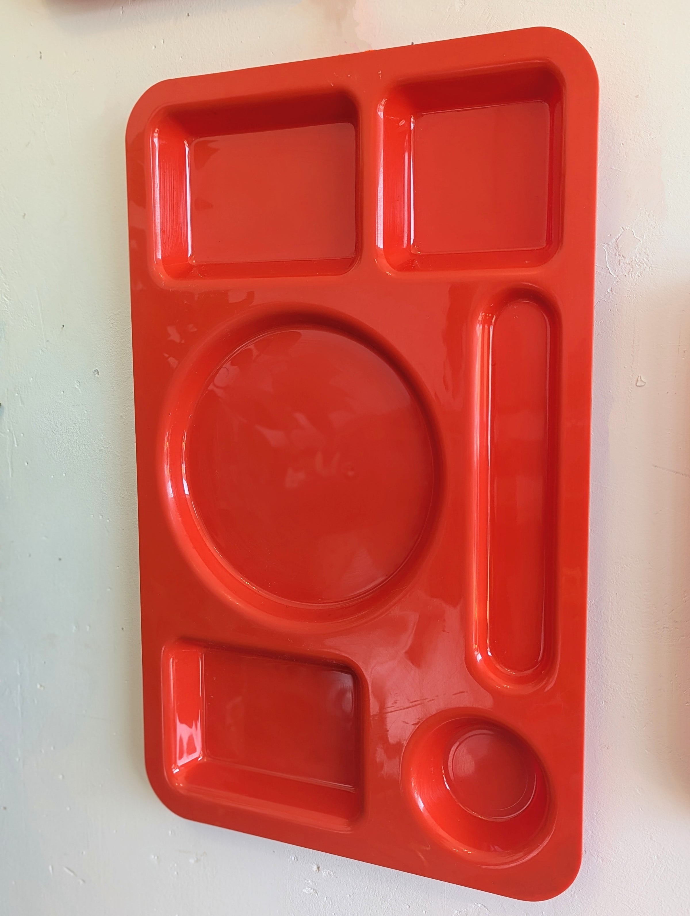 Plateau repas Guzzini rouge orangé des années 70, design par Luigi Massoni