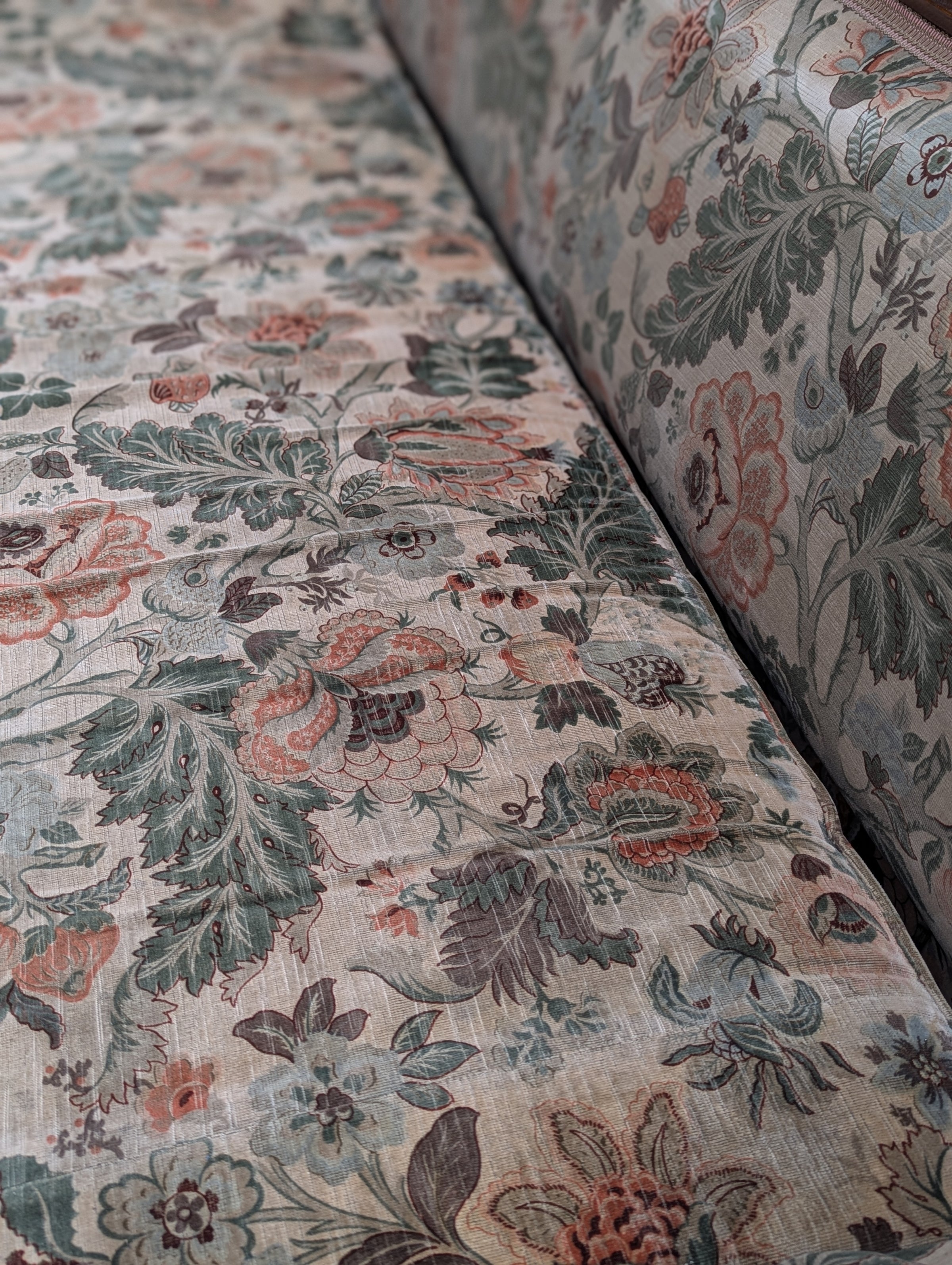Canape banquette XIXe avec tissu d'origine en tres bon état.