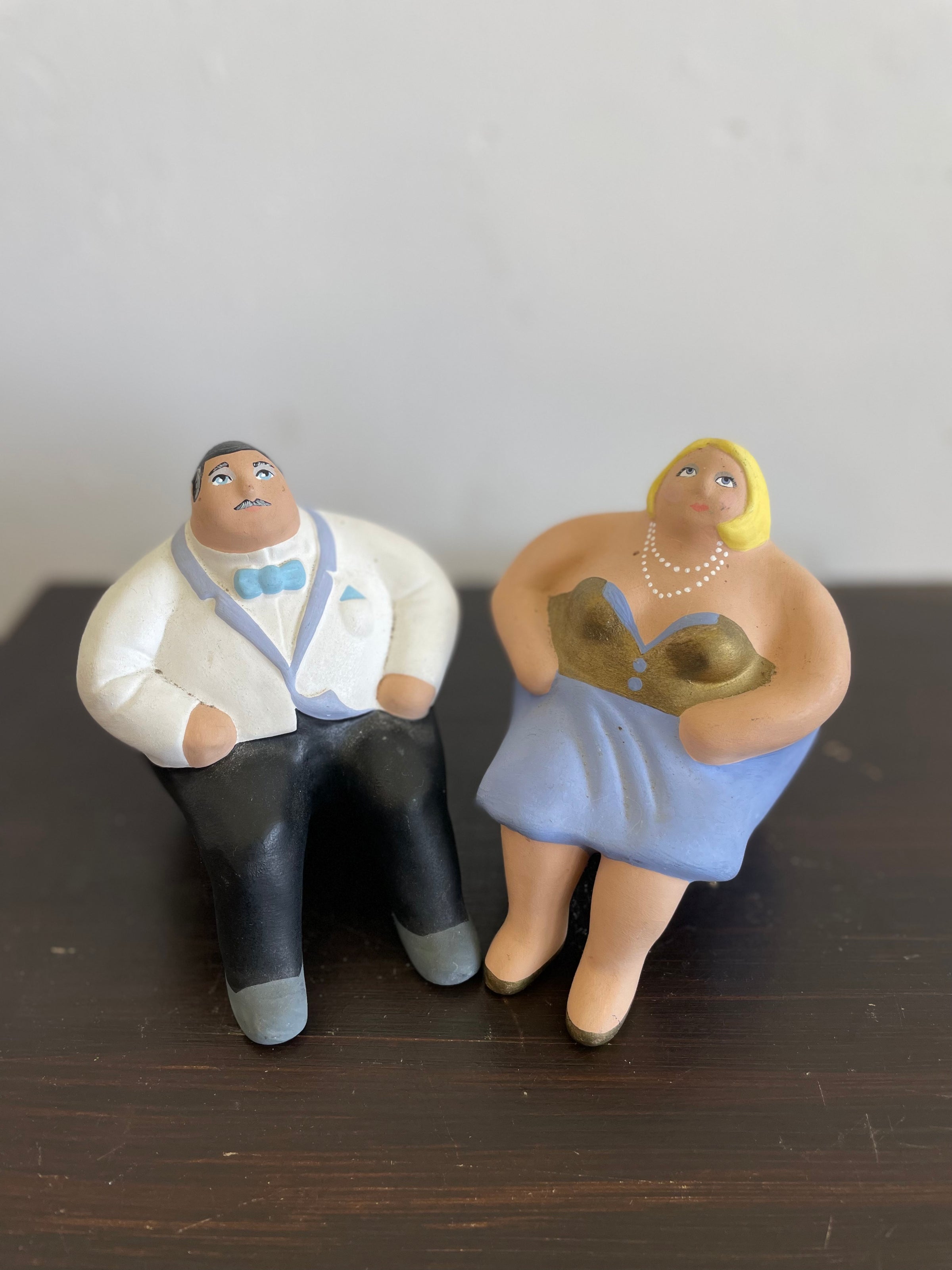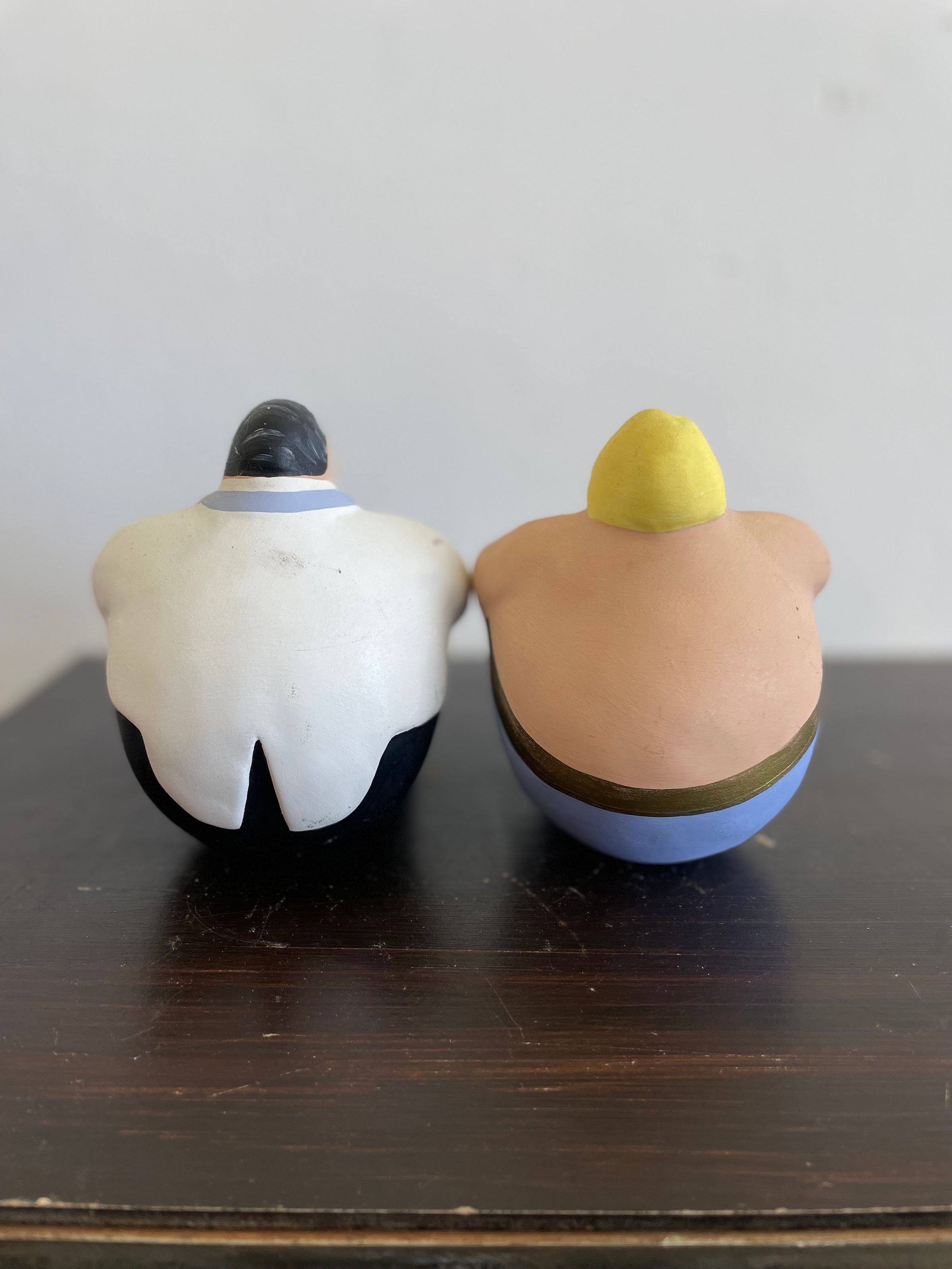 Duo de figurine en porcelaine creuse de l’Aquilone des années 80, signés au crayon.